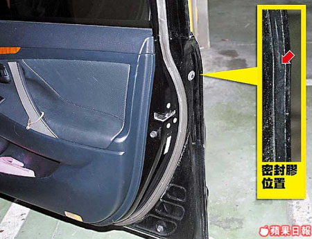 部分臺灣產(chǎn)豐田車車門、后行李箱、引擎蓋邊緣使用的密封膠(黃框箭頭處為車門密封膠”,表面恐硬化、龜裂,導(dǎo)致雨水滲透而生銹。來源:臺灣《蘋果日報》