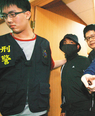 藝人大炳(余炳賢)(中)昨天又因涉嫌持有毒品被逮捕,口罩顏面,回避采訪。圖片來(lái)源:臺(tái)灣《聯(lián)合報(bào)》
