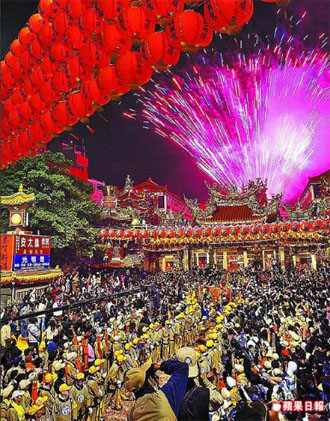 中國(guó)臺(tái)灣網(wǎng)4月17日消息 綜合臺(tái)灣媒體報(bào)道,臺(tái)灣年度宗教盛事,臺(tái)中縣大甲鎮(zhèn)瀾宮媽祖繞境活動(dòng),昨晚上11時(shí)起駕,沿途鑼鼓喧天、鞭炮聲不斷,10多萬(wàn)名信眾夾道祝禱膜拜,大甲鎮(zhèn)形同不夜城。今年的活動(dòng)締造許多新紀(jì)錄,首度增至9天8夜、時(shí)間最長(zhǎng);首次可望破百萬(wàn)人次參加、人數(shù)最多;適逢選舉年,藍(lán)綠政治人物爭(zhēng)相曝光,政治味也最濃。