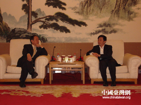 撫順市副市長楊學海會見郁慕明。(撫順市臺辦 攝)