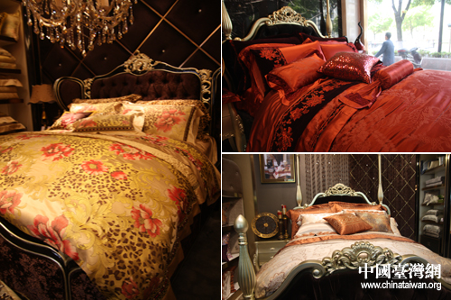 絲綢之路集團展出的部分精美家紡類絲綢產(chǎn)品(中國臺灣網(wǎng) 李典典攝)