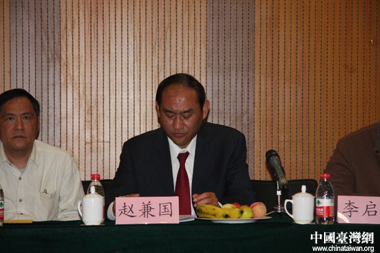臺商——濟寧得亞利聚合體有限公司董事長趙兼國發(fā)言(圖片來源:兩岸關系雜志社)
