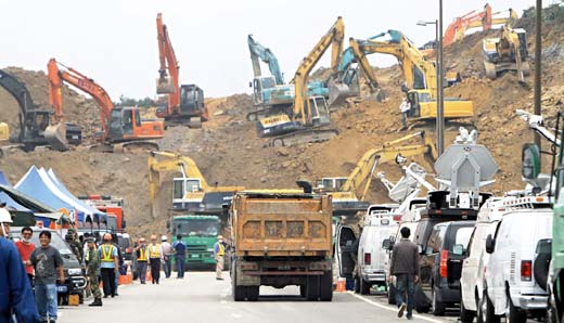 昨天是臺灣三號高速公路基隆七堵段山體滑坡后的第一個(gè)上班日,救災(zāi)單位在現(xiàn)場加派機(jī)具進(jìn)場,全力開挖,山頭上滿是挖土機(jī),全力尋找任何可能的生機(jī)。