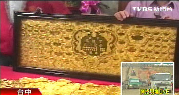 大甲媽祖鑾轎出巡期間,臺(tái)灣各地信徒簇?fù)砟ぐ荩S多人還愿贈(zèng)送金牌,鎮(zhèn)瀾宮初步估計(jì)至少收到1400多面金牌。媽祖鑾轎上方擺放著一面匾額,里面擺滿999純金的足兩金牌,最重的一塊有8兩重,市值超過(guò)35萬(wàn)元。鎮(zhèn)瀾宮人員透露:“捐贈(zèng)者是建筑業(yè)的,今年是第3年了,今年他覺得還金牌很高興,一定是有達(dá)到每個(gè)人的目標(biāo)!