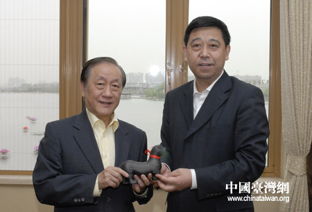 中國(guó)臺(tái)灣網(wǎng)5月5日西安消息 5月5日,陜西省臺(tái)辦主任閆超英在西安會(huì)見(jiàn)臺(tái)灣新黨主席郁慕明,并介紹了陜西積極社會(huì)發(fā)展情況和風(fēng)土人情。