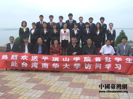 平頂山學(xué)院首批赴臺(tái)交流訪問的學(xué)生共15名, 6月7日返回。他們將與臺(tái)灣南華大學(xué)的師生互相溝通、相互學(xué)習(xí),并觀察了解南華大學(xué)的辦學(xué)體制等。(中國(guó)臺(tái)灣網(wǎng) 平頂山市臺(tái)辦 聯(lián)合報(bào)道)