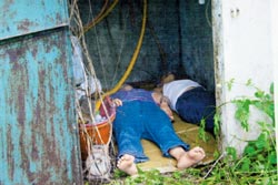 直到11日凌晨3點(diǎn)半左右,張嫌打電話給弟弟,口吻顯得慌張、疲累,說了一句“爸媽沒了”,說自己先喂父母吃安眠藥,然后再燒炭致他們于死,尸體就放在果園工棚里,叫弟弟去找。接著又說妻子和三個(gè)兒女也沒了,他已經(jīng)棄尸在嘉義市,大約早上5、6點(diǎn)就會(huì)被發(fā)現(xiàn)。張嫌胞弟一聽大為吃驚,邊報(bào)警邊前往工棚找尋父母,果然發(fā)現(xiàn)并排躺在一起的雙親。