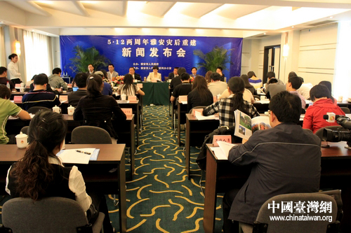 四川雅安市舉行災(zāi)后重建新聞發(fā)布會(huì),向社會(huì)各界通報(bào)雅安加快建設(shè)災(zāi)后美好家園的情況。(中國(guó)臺(tái)灣網(wǎng) 高斯斯 攝)