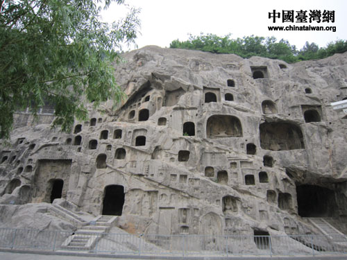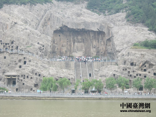 從遠處眺望石窟,更覺壯美異常。(中國臺灣網(wǎng) 朱毅 攝)