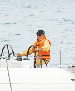 潤泰集團(tuán)總裁尹衍梁駕駛大潤發(fā)號(hào),循海峽杯帆船賽航線到大陸廈門。圖片來源:臺(tái)灣《聯(lián)合報(bào)》