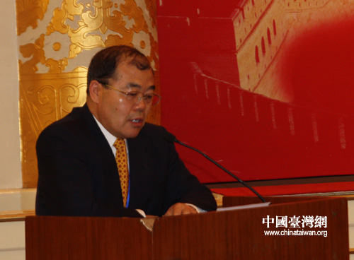 全國(guó)臺(tái)研會(huì)執(zhí)行副會(huì)長(zhǎng)兼秘書(shū)長(zhǎng)周志懷致辭。(中國(guó)臺(tái)灣網(wǎng) 趙靜攝)