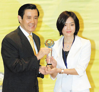 馬英九為李宛凌頒獎。 來源:臺灣《聯(lián)合報》