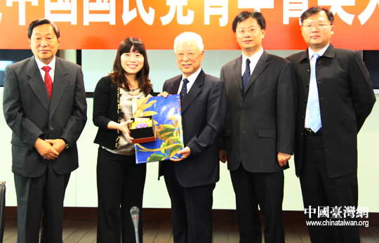 “中國(guó)國(guó)民黨青年菁英大陸參訪團(tuán)”向民革中央贈(zèng)送紀(jì)念品(中國(guó)臺(tái)灣網(wǎng) 孫金誠(chéng) 攝)