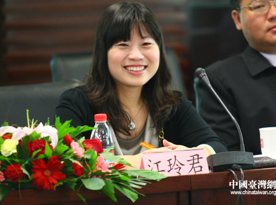 “中國(guó)國(guó)民黨青年菁英大陸參訪團(tuán)”團(tuán)長(zhǎng)江玲君發(fā)言(中國(guó)臺(tái)灣網(wǎng) 孫金誠(chéng) 攝)
