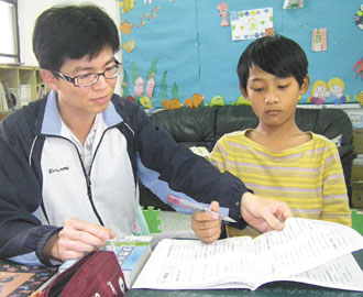 屏東縣獅子鄉(xiāng)草埔小學(xué)內(nèi)文分班學(xué)生邱瑞杰,本學(xué)期成了該校唯一學(xué)生,少了玩伴常悶悶不樂。圖為導(dǎo)師和他“一對(duì)一”上課。來源:臺(tái)灣《聯(lián)合報(bào)》