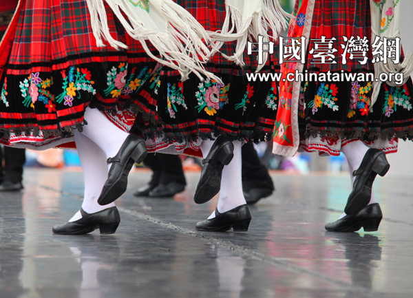 6月11日,來自保加利亞的Trakia歌舞團(tuán),在上海世博園歐洲廣場(chǎng)為游客表演民族歌舞。女舞者身著色彩鮮艷的民族服裝,跳著輕快的舞步。(中國臺(tái)灣網(wǎng) 田云鵬 攝)
