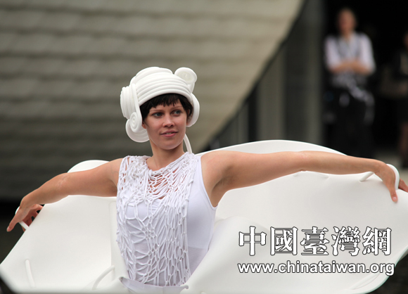 6月11日,上海世博園芬蘭館外,白色舞者為排隊(duì)等候入館的游客翩翩起舞,并不時(shí)與他們進(jìn)行互動(dòng)。在芬蘭館排隊(duì)等候入館也成為一種享受。 (中國臺(tái)灣網(wǎng) 田云鵬 攝)