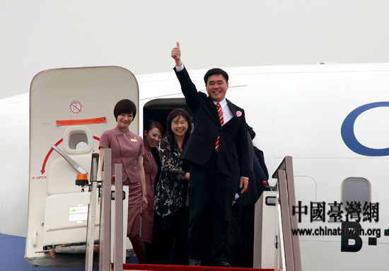 臺(tái)北市長(zhǎng)郝龍斌一行抵達(dá)上海虹橋機(jī)場(chǎng)。(中國(guó)臺(tái)灣網(wǎng) 田云鵬 攝)