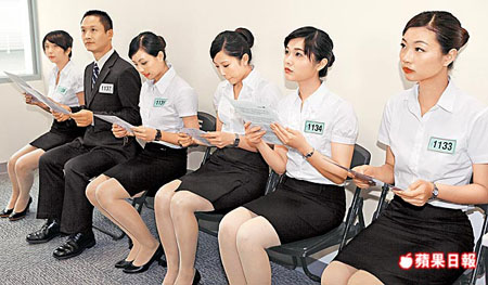 臺灣華航招募空服員,應試者須以英語朗讀服務廣播詞,考生上場前把握時間練習。 來源:臺灣《蘋果日報》