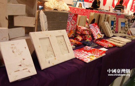 圖為第三屆海峽兩岸文博會臺灣文創(chuàng)展區(qū)展出的,使用再生紙和花朵制作成的相框、記事本。(中國臺灣網(wǎng) 張弛 攝)