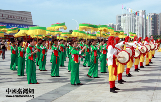 文藝團體在會場前表演節(jié)目慶祝第三屆海峽兩岸文博會開幕。(中國臺灣網(wǎng) 高斯斯 攝)