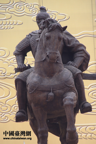 開漳圣王陳元光塑像今天下午在漳州市人民廣場落成。(中國臺灣網(wǎng) 肖燕 攝)