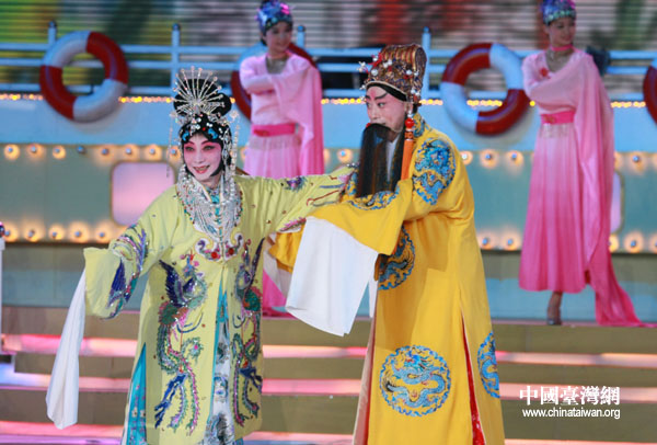梅葆玖、李寶春兩位海峽兩岸的藝術家在第二屆海峽論壇晚會上演繹京劇《長生殿》選段。(中國臺灣網(wǎng) 鐘寶華 攝)