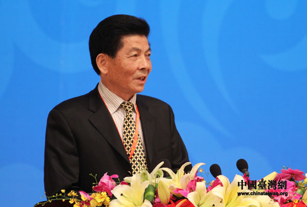 中華媽祖文化交流協(xié)會常務副會長林國良在第二屆海峽論壇大會上演講。(中國臺灣網(wǎng) 田云鵬 攝)