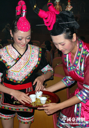 一壺醇厚的米酒,讓兩岸同胞心心相印;一杯香甜的米酒,讓兩岸同胞情有獨鐘。畬族姑娘們在場上捧著米酒、唱著畬歌《迎賓酒》,歡迎臺灣同胞的到來。