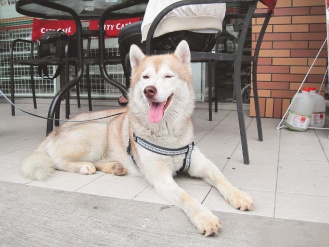這只漂亮、通人性的哈士奇犬被遺棄在臺中縣一家超市前。圖片來源:臺灣《聯(lián)合報(bào)》