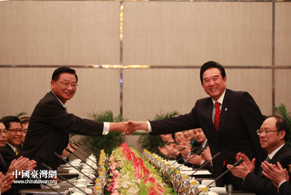 中國(guó)臺(tái)灣網(wǎng)6月29日重慶消息 今天上午9時(shí)許,海協(xié)會(huì)與臺(tái)灣;鶗(huì)在重慶申基索菲特大酒店舉行第五次領(lǐng)導(dǎo)人會(huì)談。海協(xié)會(huì)會(huì)長(zhǎng)陳云林、海基會(huì)董事長(zhǎng)江丙坤親切握手并分別致辭。