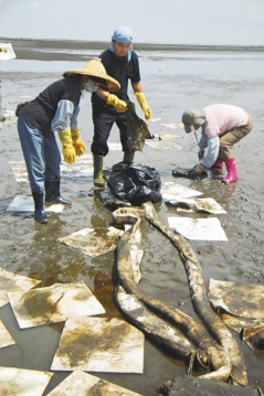 臺中縣生態(tài)協(xié)會總干事蔡仲晃說,濕地上還有夏候鳥棲息,油污清不干凈,將造成動、植物缺氧,死傷難測;縣府農(nóng)業(yè)處緊急邀請專家學(xué)者研商并監(jiān)測當(dāng)?shù)厣鷳B(tài)。
