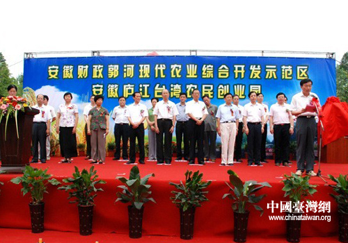 中國(guó)臺(tái)灣網(wǎng)7月1日廬江消息 日前,安徽財(cái)政郭河現(xiàn)代農(nóng)業(yè)綜合開發(fā)示范區(qū)暨安徽廬江臺(tái)灣農(nóng)民創(chuàng)業(yè)園揭牌儀式在廬江縣隆重舉行。揭牌儀式由廬江縣委副書記、代縣長(zhǎng)刁吉潤(rùn)主持,縣委書記王民生致歡迎辭,市委書記陳強(qiáng)宣布開園。