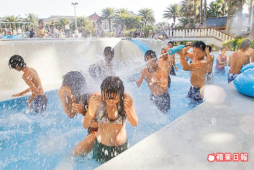 帥哥辣妹趁周末假日涌進水上樂園戲水消暑。圖片來源:臺灣《蘋果日報》