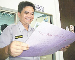 宜蘭縣警員看到學(xué)生們寫得滿滿的“感謝卡”非常感動。圖片來源:臺灣《中國時報(bào)》