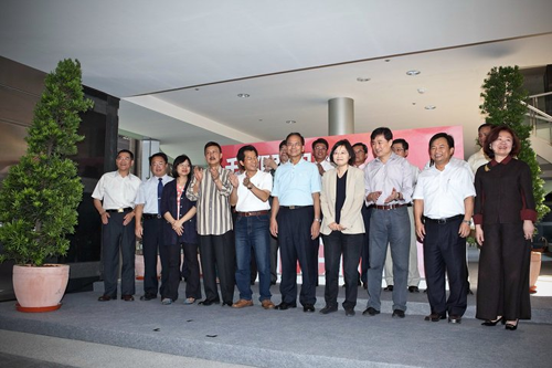 蔡英文(前排右四)競選團隊成立,游錫堃(右五)任主委,林錫耀(右六)任總干事。