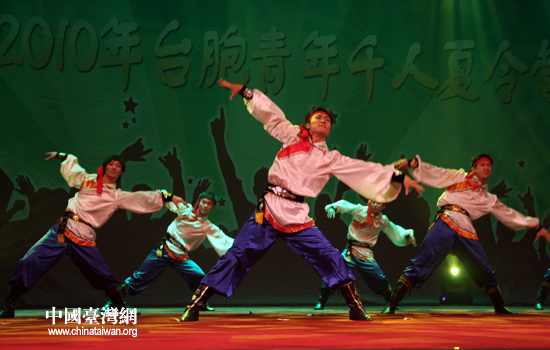 6日,全國(guó)臺(tái)聯(lián)2010年臺(tái)胞青年千人夏令營(yíng)在北京舉行開營(yíng)儀式。圖為大陸高校青年獻(xiàn)上了精彩文藝演出。(中國(guó)臺(tái)灣網(wǎng) 張弛 攝)