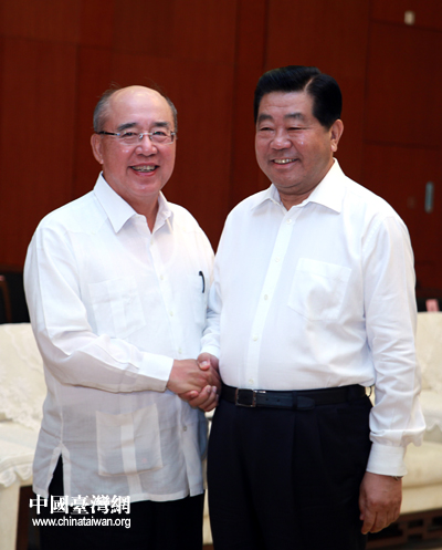 中國(guó)臺(tái)灣網(wǎng)7月9日廣州消息 中共中央政治局常委、全國(guó)政協(xié)主席賈慶林7月9日在廣州會(huì)見(jiàn)中國(guó)國(guó)民黨榮譽(yù)主席吳伯雄及應(yīng)邀參加第六屆兩岸經(jīng)貿(mào)文化論壇的兩岸各界人士。(記者 鐘寶華)
