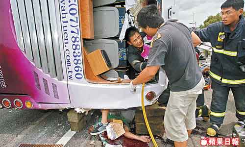 報道指出,當時坐右后方最后一排的新兵林其正,在激烈碰撞下,從車窗被高速拋出車外,遭路旁護欄鋼板和游覽車體擠壓 ,身首異處當場慘死。警方將追究丁維芳業(yè)務過失致死罪責。發(fā)生事故的新兵隸屬空軍907旅,由臺南官田新訓中心代訓,上月30日入伍,上周五放懇親假,昨午200多名新兵在臺北中正紀念堂分乘5輛游覽車回營區(qū),其中一輛游覽車出車禍。