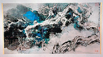 張大千的潑墨山水“古木松柏”。 圖片來源:臺(tái)灣《中國時(shí)報(bào)》(資料圖)