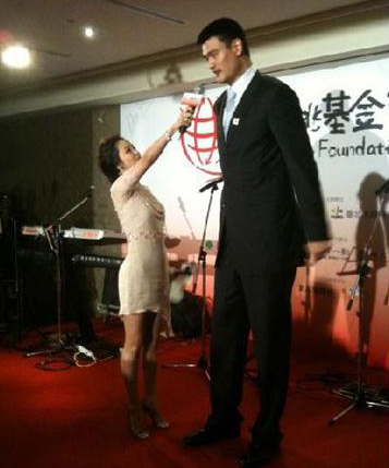 侯佩岑擔(dān)任“姚基金慈善之旅”記者會(huì)主持人,身高的差距讓畫面相當(dāng)有趣。圖片來(lái)源:臺(tái)灣今日新聞網(wǎng)