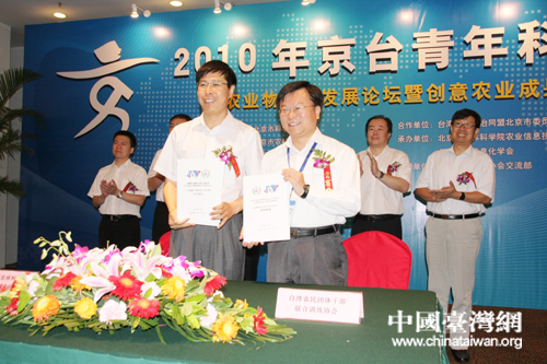 臺灣農(nóng)訓(xùn)協(xié)會與北京農(nóng)業(yè)信息技術(shù)研究中心簽署合作交流協(xié)議 (中國臺灣網(wǎng) 孫金誠 攝)