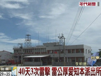 臺東知本派出所在40天內(nèi)遭3次雷擊,只能說“雷公厚愛”。(圖:臺灣“今日新聞網(wǎng)”)