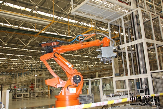 華泰汽車(chē)城車(chē)間內(nèi),自動(dòng)化設(shè)備在有條不紊地工作著。(中國(guó)臺(tái)灣網(wǎng) 王文英 攝)