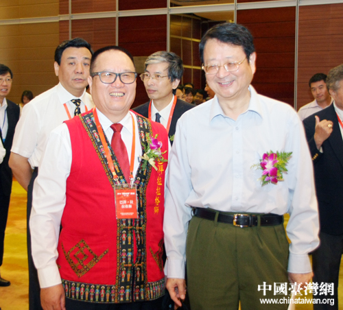 臺盟中央常務(wù)副主席汪毅夫與臺灣少數(shù)民族代表親切交流 (中國臺灣網(wǎng) 孫金誠 攝)