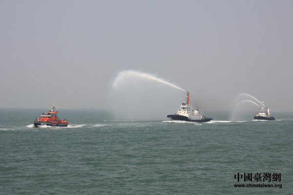 消防船只噴水表演。(中國臺灣網(wǎng) 肖燕 攝)