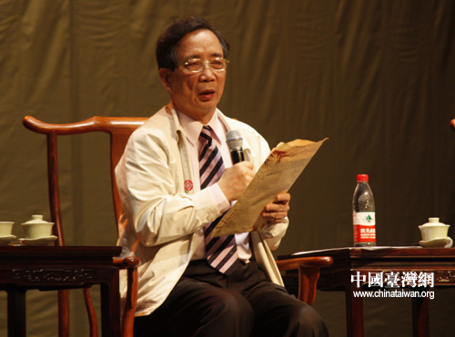 中國臺灣網(wǎng)9月17日北京消息 “漢字對中華文化的作用,怎么說也不過分”、“為遺產(chǎn)分家打官司是最讓人瞧不起的”、“方言不懂沒關(guān)系,我們有方塊字,彼此就不會陌生”……今天上午,一串串妙語連珠,從中國藝術(shù)研究院劇場傳出,古色古香的中式座椅上,端坐著4位來自兩岸的“大家”——許嘉璐、林谷芳、田青、黃光男。首屆兩岸漢字藝術(shù)節(jié)的“開卷·漢字:高校漢字藝術(shù)講座”系列活動(dòng)在此拉開帷幕,今天的主題是“漢字與中華文化”,4位“大家”的發(fā)言不止關(guān)乎專業(yè),許多親身親歷的小故事尤其精彩,在博得大家會心一笑的同時(shí),每一個(gè)人對“方塊字”的深情亦令人動(dòng)容。