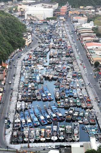 宜蘭縣南方澳漁港早就被進(jìn)港避風(fēng)的船只擠得是水泄不通。來源:臺(tái)灣《中國(guó)時(shí)報(bào)》