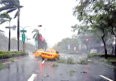 “凡亞比”臺(tái)風(fēng)風(fēng)強(qiáng)雨大,造成高雄市區(qū)積水嚴(yán)重,汪洋一片。 來源:臺(tái)灣《中國(guó)時(shí)報(bào)》
