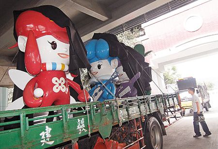 連花博吉祥物,也由貨車運(yùn)送到濱江街的暫置區(qū)躲避臺(tái)風(fēng)。來源:臺(tái)灣《中國(guó)時(shí)報(bào)》